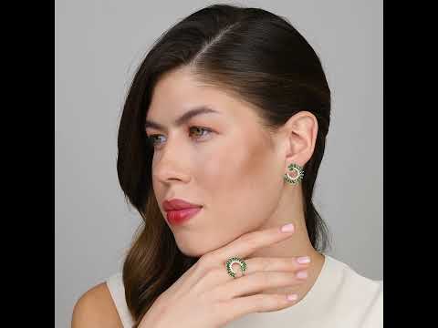 Cercei Aur Galben 14K Cu Zirconiu Verde Si Alb, Floare 1.60gr
