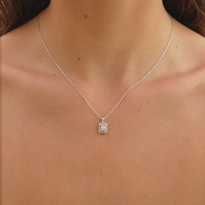 Lant cu Pandantiv Aur Alb 18K cu Diamante 0.16ct