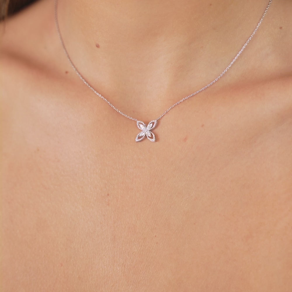 Lant cu Pandantiv Floare Aur Alb 18K cu Diamante 0.37ct